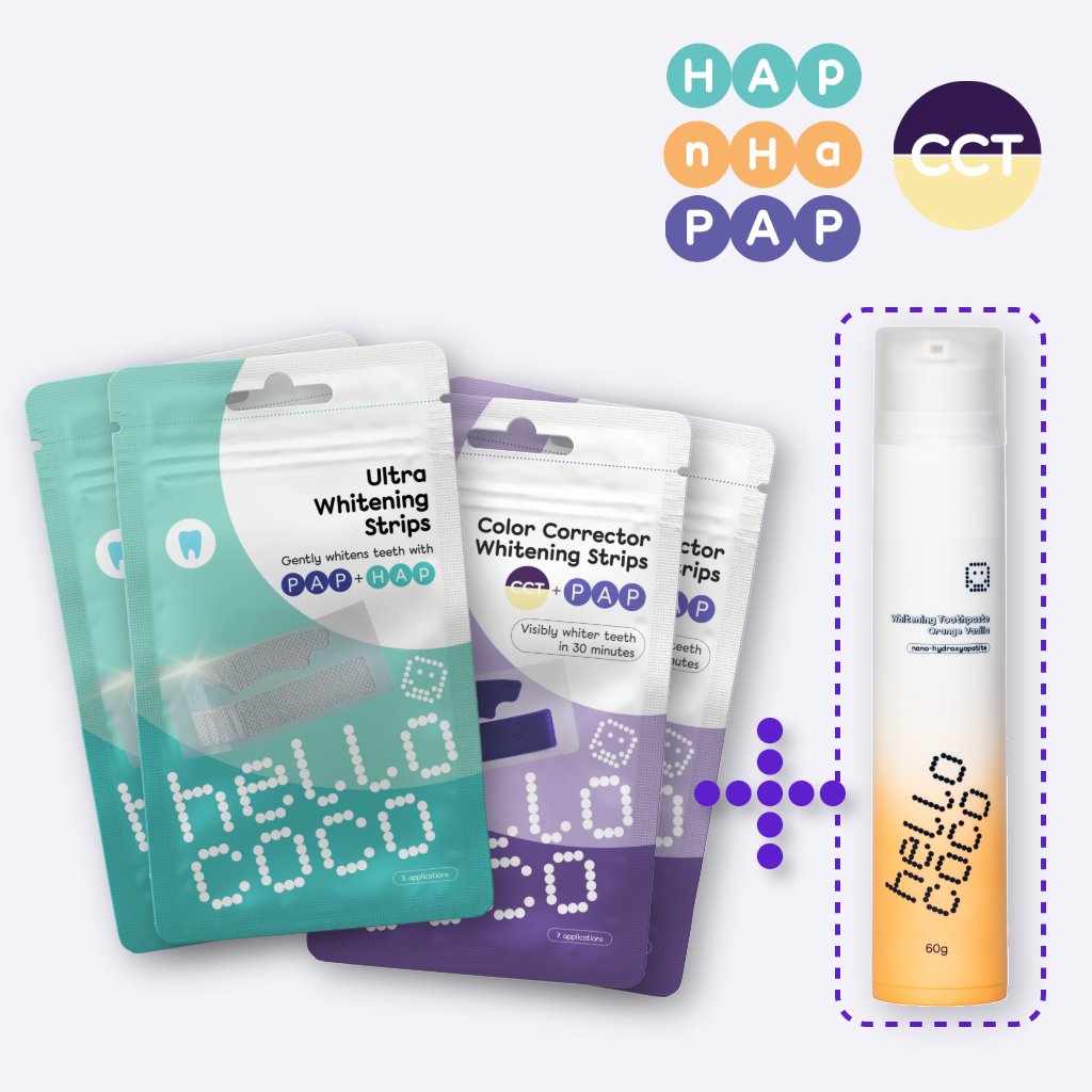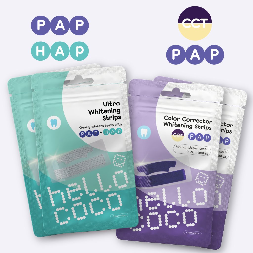 Belilni trakovi s tehnologijo PAP zagotavljajo vidno beljenje zob, trakovi CCT pa poleg dejanskega beljenja zagotavljajo tudi takojšen optični učinek. Rezultat je najučinkovitejša, najnežnejša in najudobnejša belilna nega zob, ki jo ponujamo.