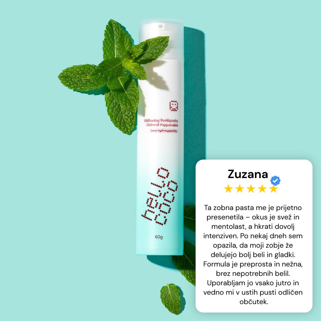 Zobna sklenina je kar 97 % sestavljena iz hidroksiapatita – naravnega minerala, ki gradi naše zobe. Z uporabo nano-hidroksiapatita (n-Ha ne le poskrbite za lepši nasmeh, temveč tudi naravno krepite in obnavljate zobno sklenino od znotraj.