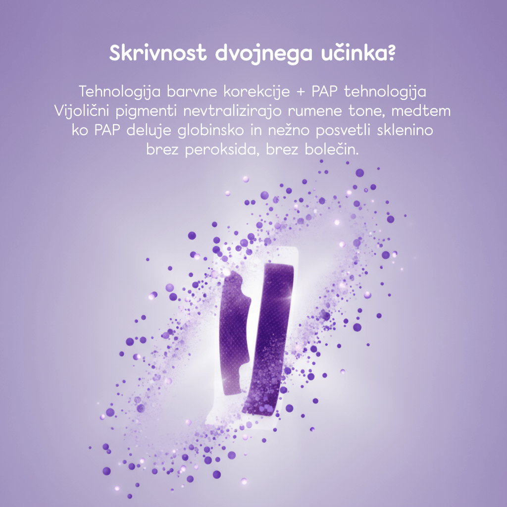Odkrijte revolucionarne belilne trakove z dvojnim učinkom, ki združujejo tehnologijo korekcije barve z učinkovito PAP formulo. Vijolični pigment takoj nevtralizira rumen odtenek zob, medtem ko PAP (ftalimidoperoksikaprojska kislina) deluje globinsko na površini sklenine, zmanjšuje madeže in spodbuja naravno beljenje brez peroksida.