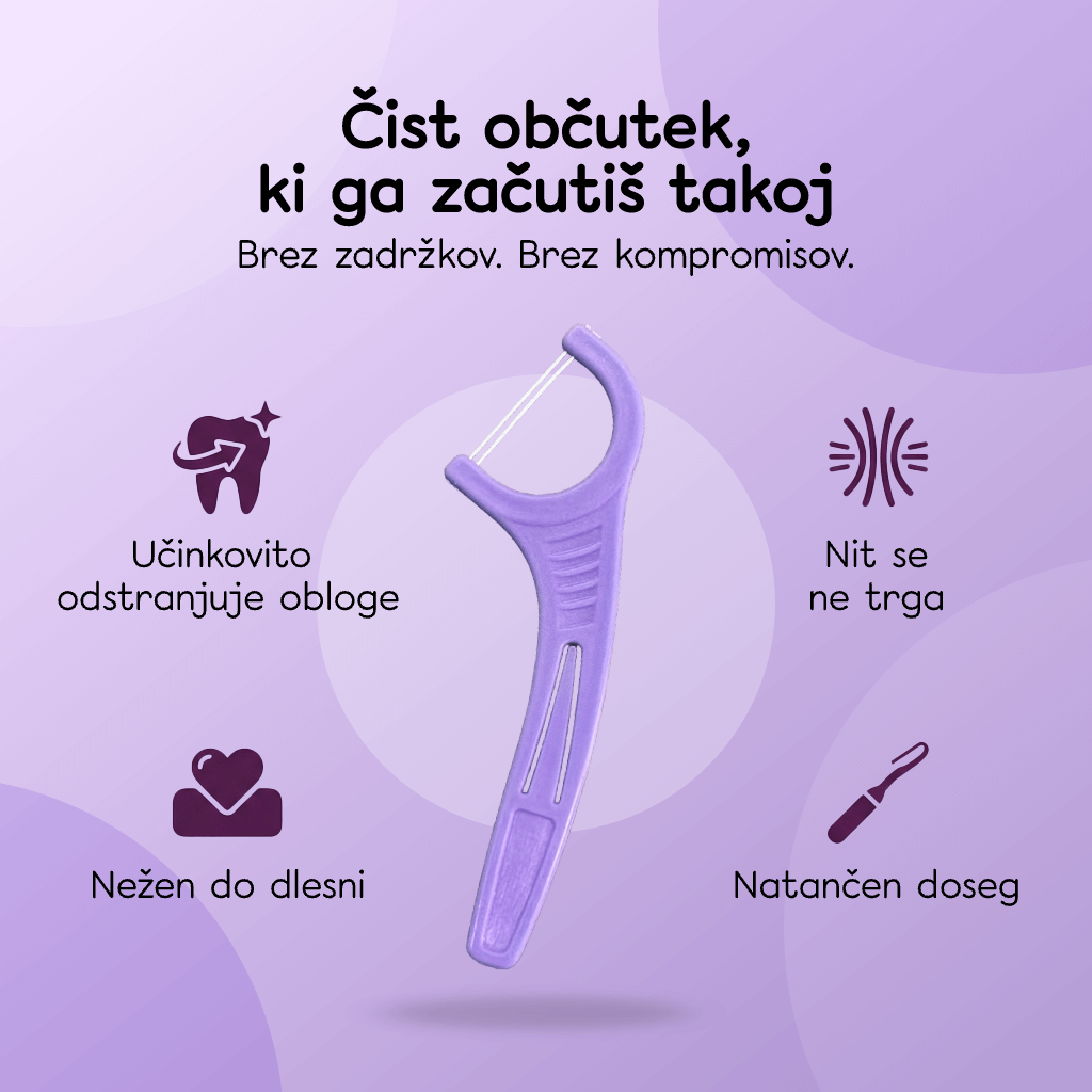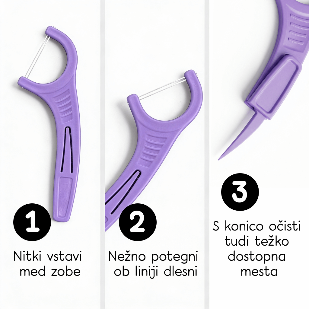 Na mestih, kamor ščetka ne doseže, je redna nega ključna. Dentalni zabotrebci z zobno nitko učinkovito odstranjujejo ostanke hrane in zobno oblogo med zobmi ter pomagajo ohranjati zdrave dlesni in svež dah vsak dan.