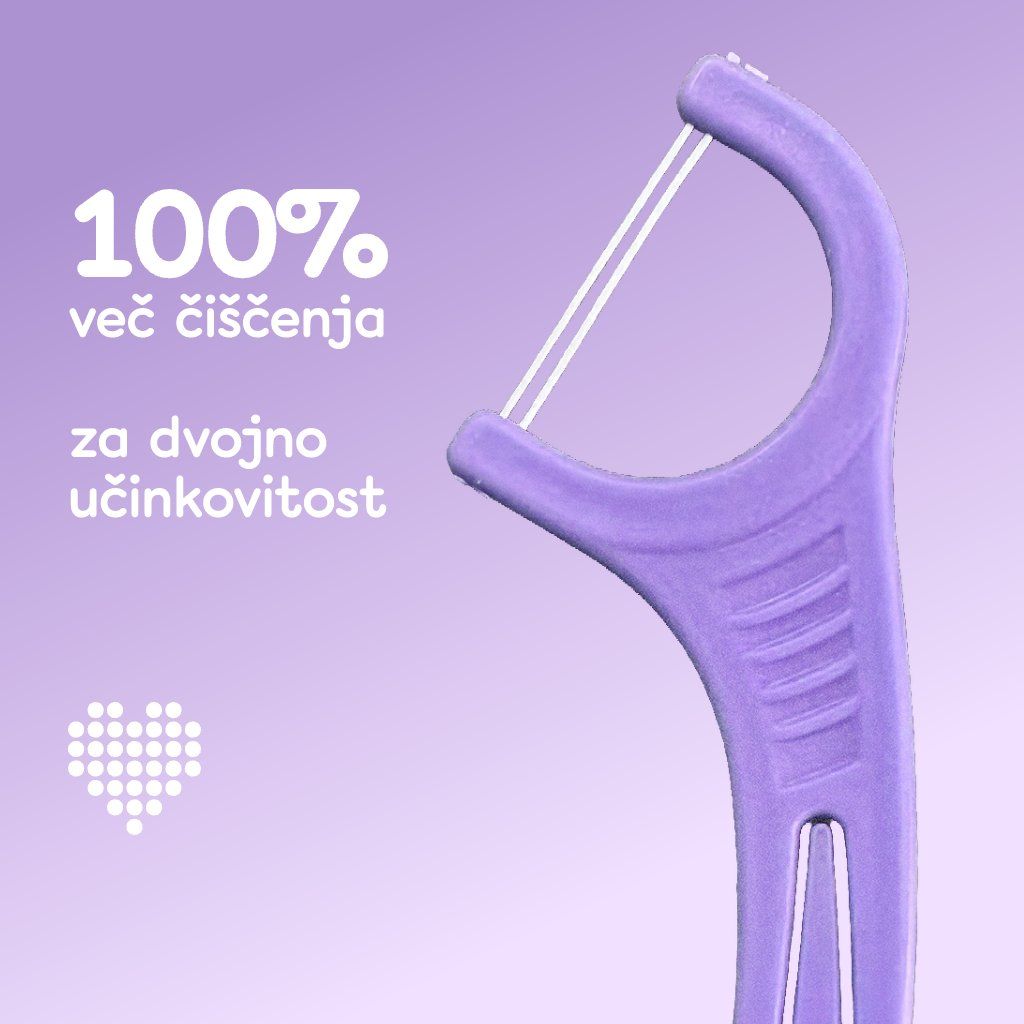 So idealna rešitev za enostavno in učinkovito čiščenje medzobnih prostorov doma ali na poti. Zaradi dvojne, močne nitke odstranijo zobno oblogo in ostanke hrane tudi iz težko dostopnih mest, brez nepotrebnega draženja dlesni.